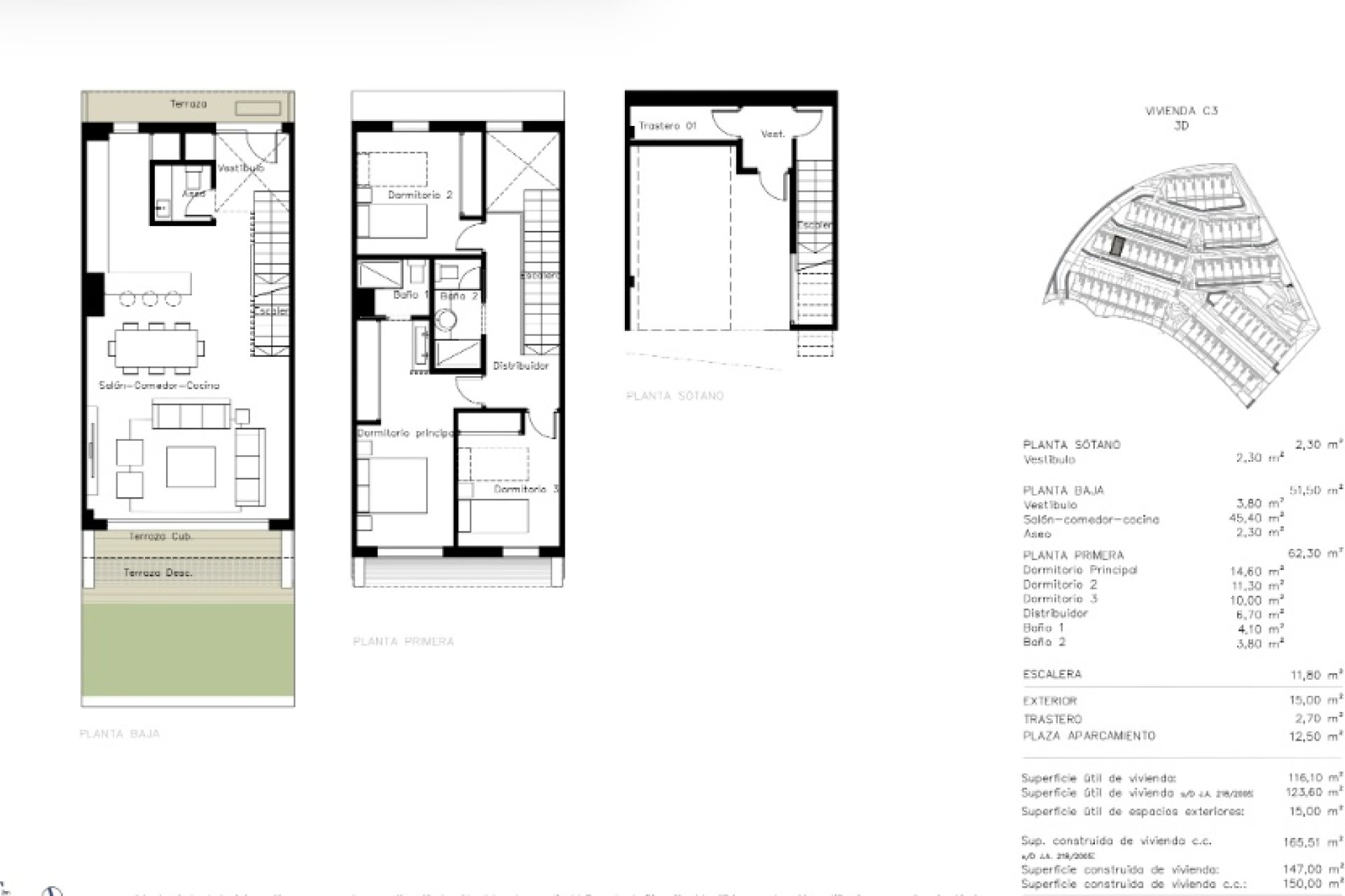 Los exteriores de estos adosados destacan por su diseño contemporáneo y funcional. Cada vivienda cuenta con un jardín privado, ideal para disfrutar de momentos al aire libre en familia o con amigos. La terraza, un espacio perfecto para relajarse, ofrece vistas al mar, creando un ambiente sereno y exclusivo. Además, algunas viviendas disponen de piscina privada, proporcionando un toque de lujo y privacidad. La arquitectura exterior se complementa con materiales de alta calidad, asegurando durabilidad y estética en cada detalle.
