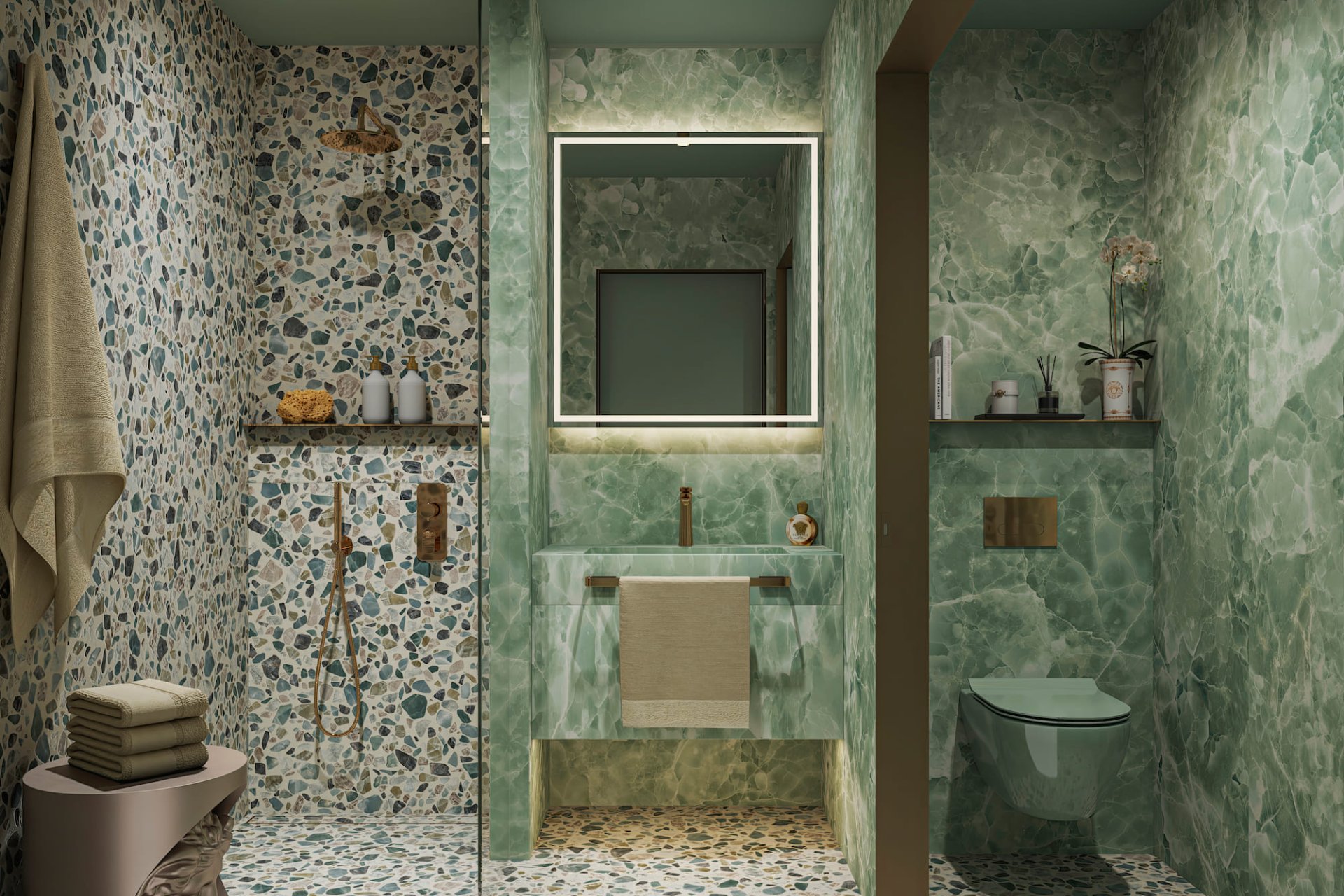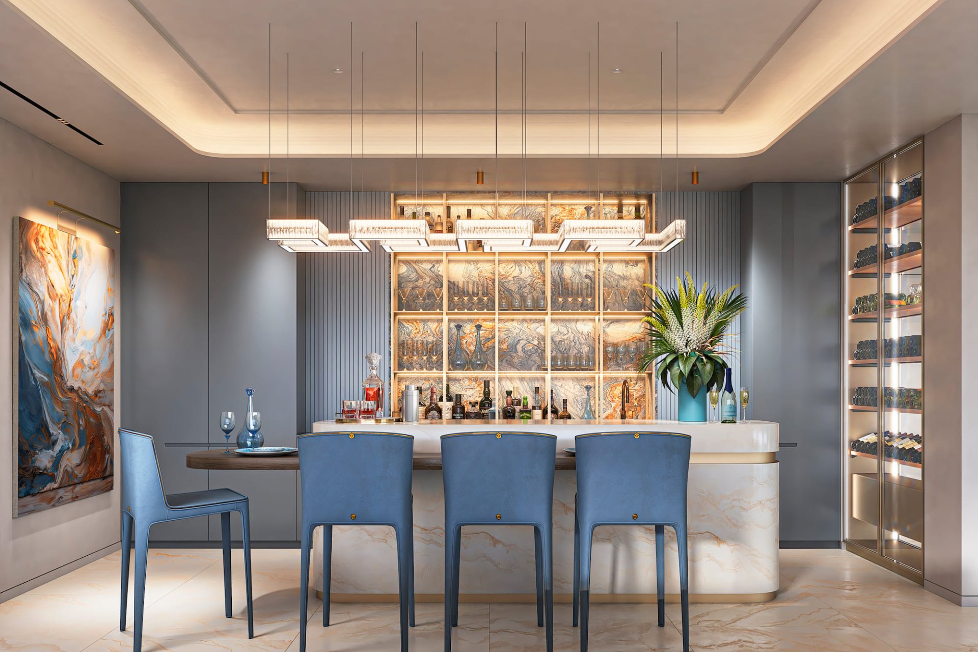 El interior de las villas ha sido diseñado pensando en el confort y la funcionalidad. Cada villa dispone de cinco dormitorios y seis baños, ofreciendo un espacio amplio y cómodo para toda la familia. La inclusión de un sistema de domótica permite a los residentes controlar diversos aspectos del hogar de manera eficiente y moderna. Los armarios empotrados en las habitaciones proporcionan un almacenamiento práctico y elegante. Además, cada villa cuenta con un garaje, asegurando espacio suficiente para vehículos y almacenamiento adicional.