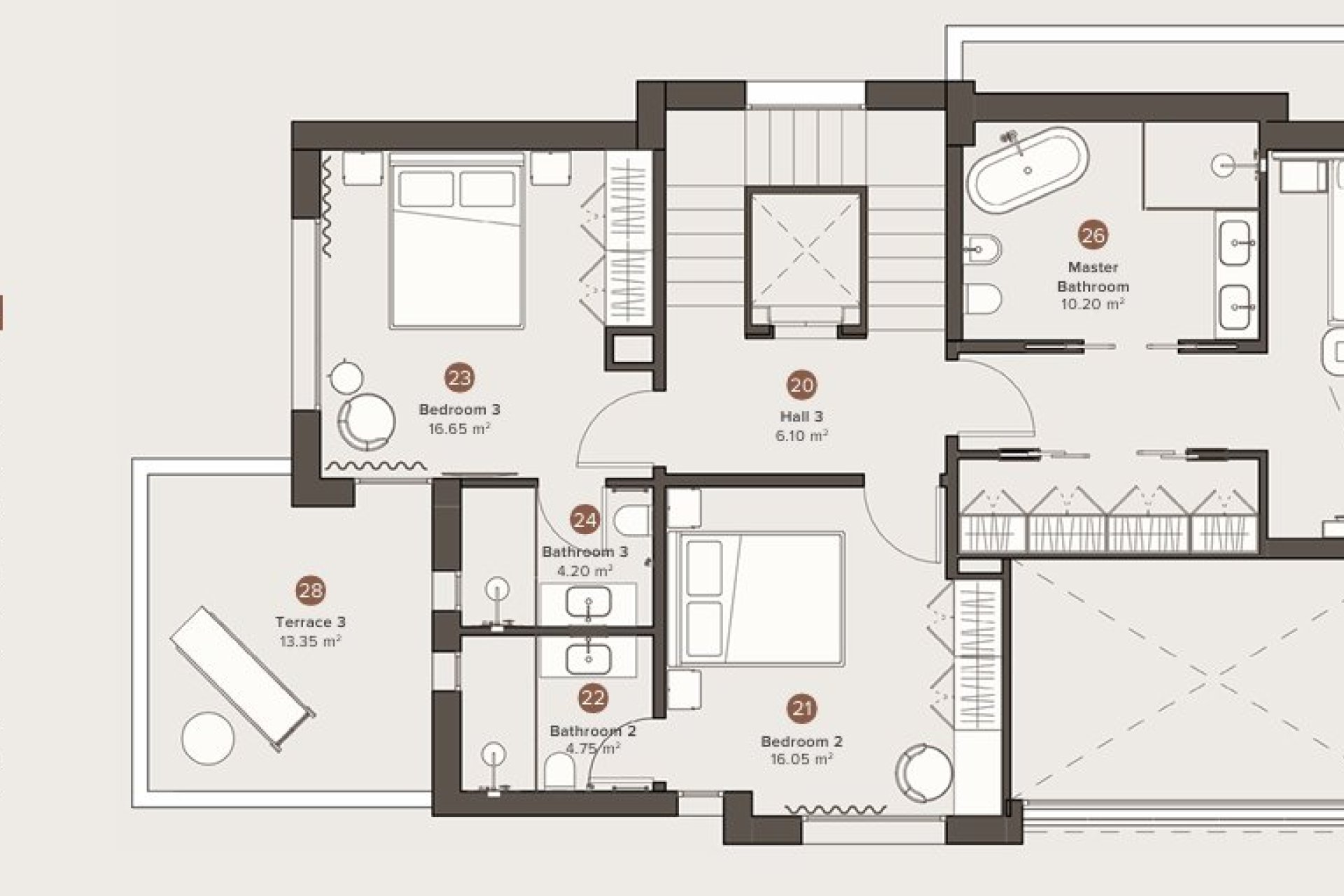 El interior de las villas ha sido cuidadosamente diseñado para ofrecer el máximo confort y estilo. Con cuatro dormitorios y cuatro baños, cada propiedad garantiza un espacio amplio y funcional para toda la familia. Los suelos de gres porcelánico aportan un toque moderno y elegante a cada estancia. Las villas también cuentan con armarios empotrados, proporcionando un almacenamiento eficiente y manteniendo el diseño limpio y ordenado. La inclusión de un garaje privado asegura comodidad y seguridad para los vehículos de los residentes.
