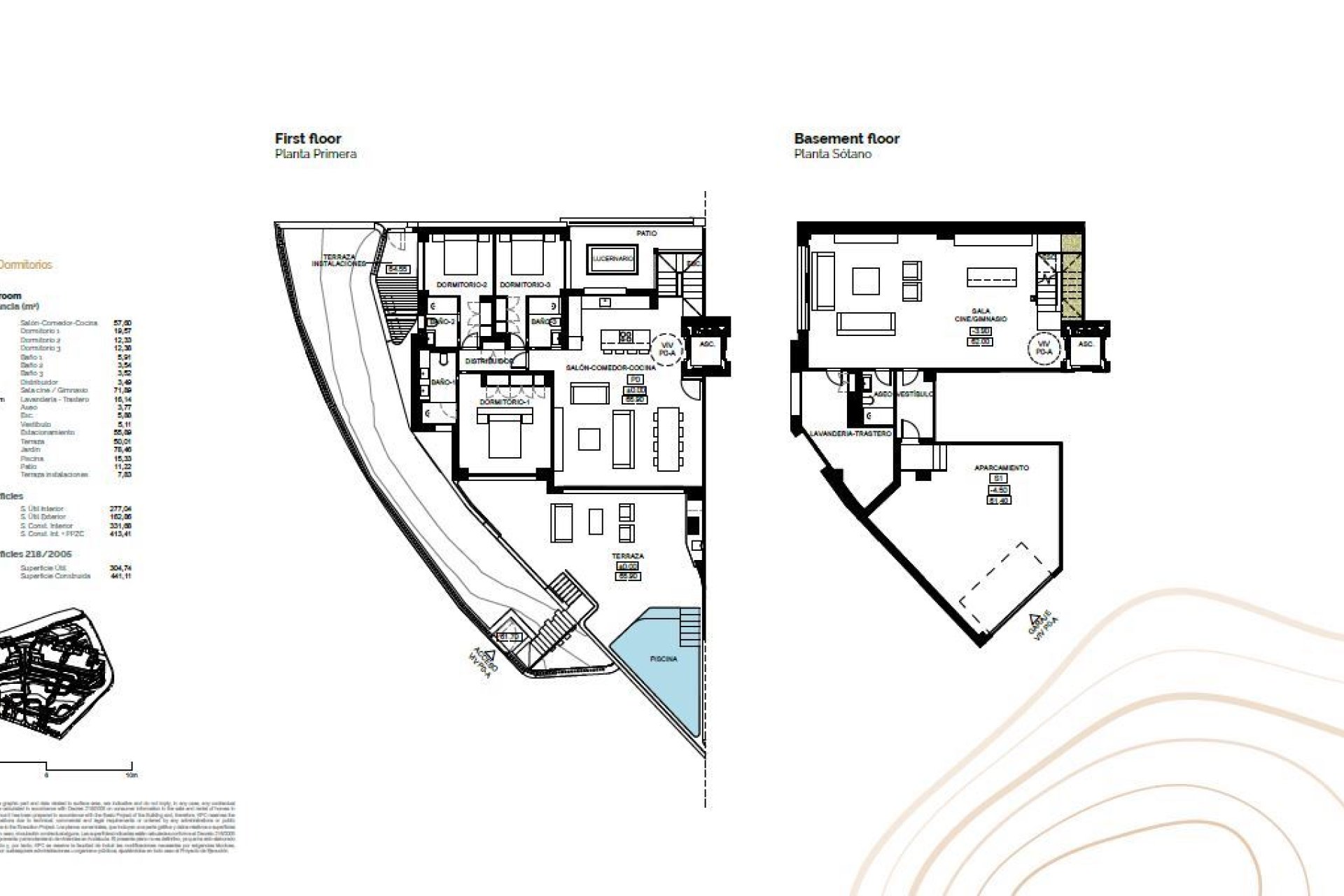 El interior de estos adosados está diseñado para ofrecer el máximo confort y modernidad. Con tres dormitorios y tres baños, cada propiedad está equipada con suelos de gres porcelánico que aportan un toque elegante y fácil de mantener. Las persianas eléctricas y el sistema de domótica mejoran la comodidad y la eficiencia energética. La cocina está equipada con electrodomésticos modernos, y el aire acondicionado garantiza un ambiente agradable durante todo el año. Los armarios empotrados ofrecen un amplio espacio de almacenamiento, mientras que la calefacción por suelo radiante asegura calidez en los meses más fríos.