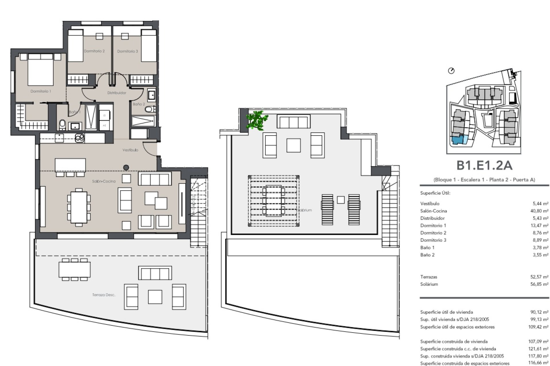 El interior de las viviendas está diseñado con un enfoque en la calidad y el confort. Los suelos de gres porcelánico ofrecen durabilidad y un acabado moderno, mientras que las persianas eléctricas y el videoportero añaden un nivel extra de comodidad y seguridad. Todas las propiedades están equipadas con electrodomésticos de alta gama, lo que facilita la vida diaria. Los armarios empotrados proporcionan un amplio espacio de almacenamiento, manteniendo el diseño interior limpio y organizado. La distribución incluye opciones de 2 y 3 dormitorios, todos con 2 baños, lo que asegura un espacio adecuado para diferentes necesidades familiares. La presencia de un garaje privado en cada vivienda añade un nivel de conveniencia adicional, permitiendo un acceso fácil y seguro al hogar.