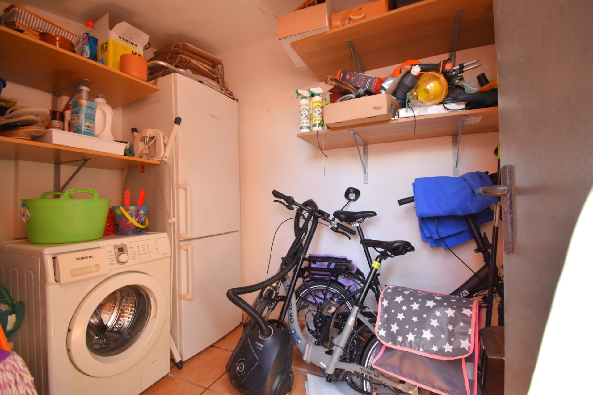 Deze vrijstaande villa met drie slaapkamers en een zuidwestelijke ligging in Playa Flamenca is gelegen in Orihuela Costa, op slechts 7 minuten lopen van diverse voorzieningen, waaronder een ruime keuze aan restaurants en cafés. Het populaire winkelcentrum La Zenia Boulevard ligt op 10 minuten afstand, terwijl het strand en een supermarkt van een grote keten in slechts 3 minuten met de auto te bereiken zijn. Diverse golfbanen liggen ook op minder dan 10 minuten rijden. De woning beschikt over een overdekt terras dat leidt naar een L-vormige woon-/eetkamer met open haard en gashaard; een aparte, goed ingerichte keuken met een deur naar buiten; een slaapkamer met tweepersoonsbed op de begane grond; en een familiebadkamer met douche. Op de eerste verdieping bevinden zich nog twee slaapkamers, waarvan de hoofdslaapkamer toegang heeft tot een privéterras, plus een interne trap naar het solarium met uitzicht op het gemeenschappelijke zwembad. Buiten bevindt zich de betegelde tuin van 100 m² met een oprit voor off-road parkeren, een berging en een overdekte ruimte, ideaal om in de schaduw te dineren. Alle slaapkamers hebben ingebouwde kasten, waarvan twee ook voorzien zijn van plafondventilatoren. Er is ook airconditioning in het hele huis. Een charmant familie- of vakantiehuis op een zeer gewilde locatie aan de Costa Blanca Zuid.