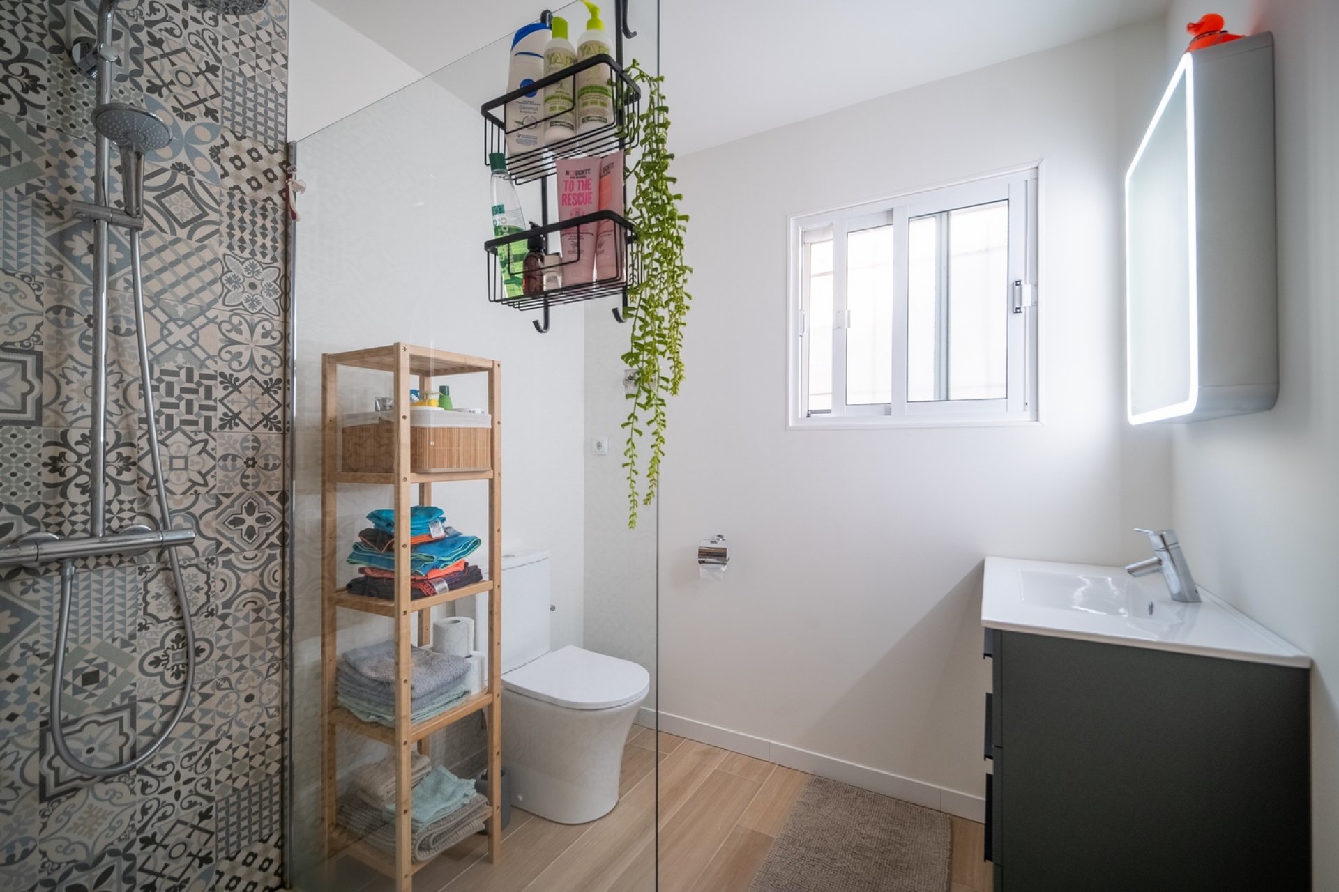 De weelderige tuin beschikt over een overdekt terras met een buitenterras, ideaal om te ontspannen en te genieten van het Mediterrane klimaat. Een trap leidt naar het dakterras, vanwaar u een prachtig uitzicht heeft over de omgeving en de iconische zoutmeren. Onder de trap bevindt zich een wasruimte voor extra gemak.
