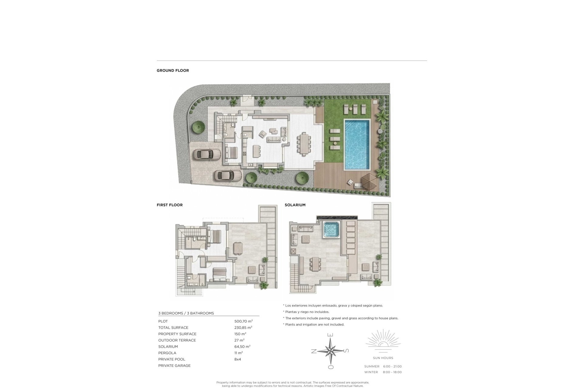 Het interieur van de woning is ontworpen om comfort en functionaliteit te maximaliseren. De drie slaapkamers zijn uitgerust met inbouwkasten, die veel opbergruimte bieden. De drie badkamers zijn ontworpen in een moderne en functionele stijl. De indeling omvat een garage, die gemak en veiligheid biedt voor het parkeren. Elk detail van het interieur is doordacht om een comfortabele en praktische woonervaring te bieden.