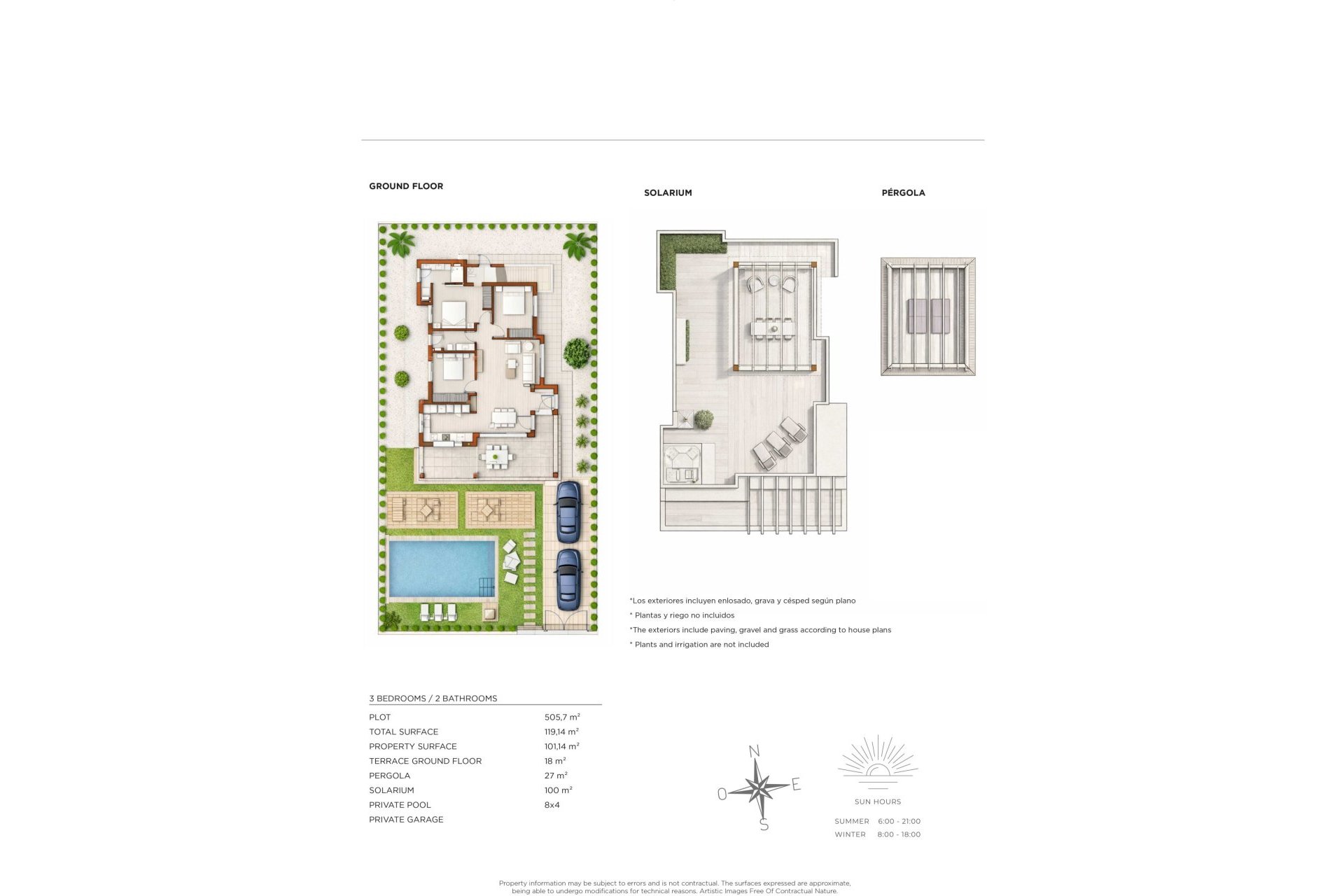 Het interieur van het chalet is ontworpen om maximaal comfort te bieden. De drie slaapkamers zijn uitgerust met inbouwkasten, die veel opbergruimte bieden. De twee badkamers zijn ontworpen in een moderne en functionele stijl. De woning beschikt ook over een garage, die comfort en veiligheid voor de voertuigen garandeert. Een solarium biedt extra ruimte om van de zon en het uitzicht te genieten, waardoor het een ideale plek is voor ontspanning.