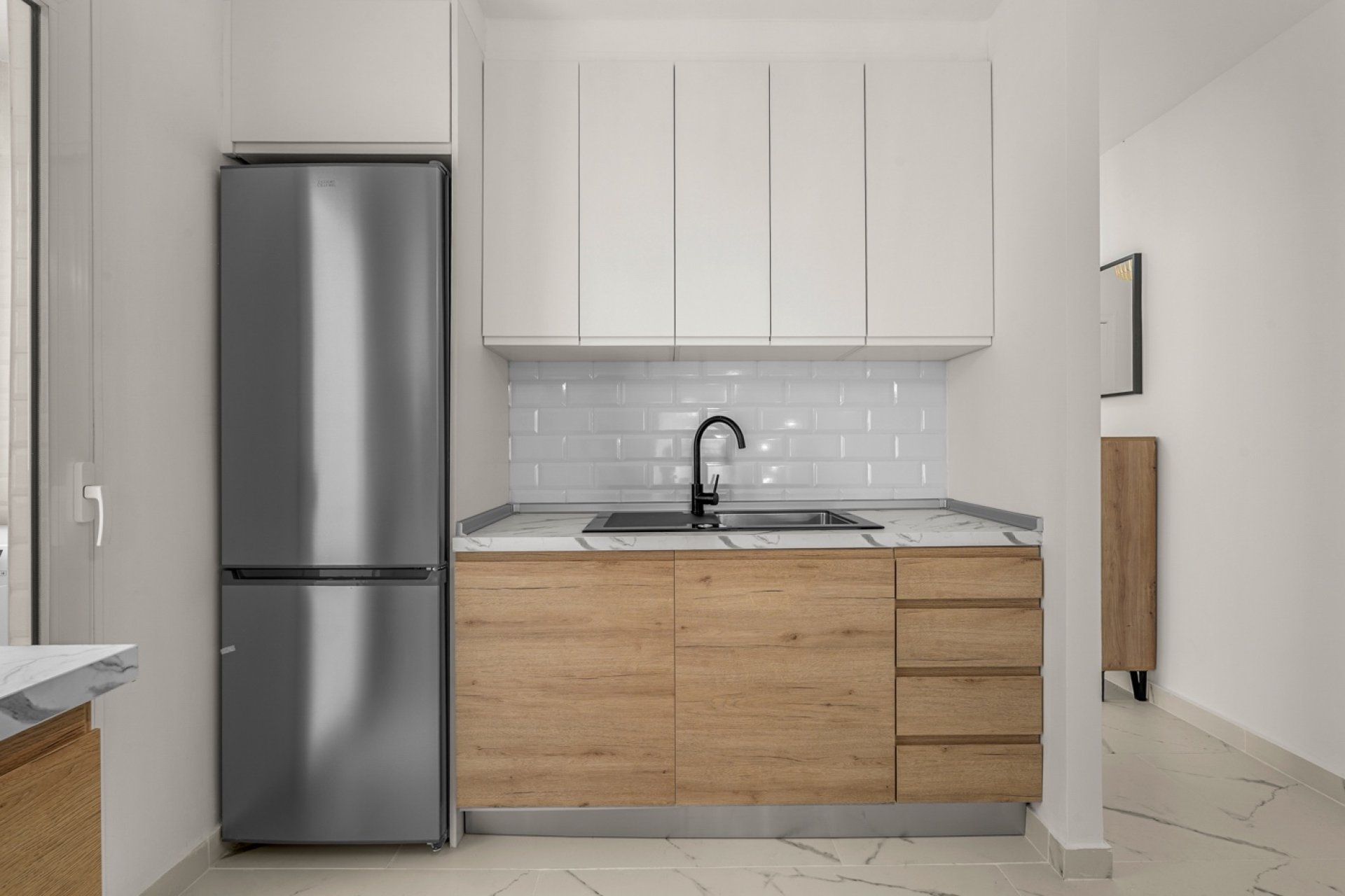 Het appartement heeft een moderne, volledig uitgeruste keuken met toegang tot een handige patio waar de wasruimte zich bevindt.