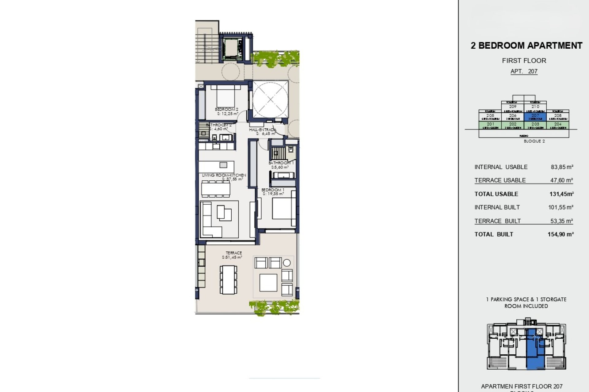Het interieur van deze woningen is ontworpen om maximaal comfort en functionaliteit te bieden. Met opties van 2 of 3 slaapkamers en 2 of 3 badkamers past elke woning zich aan de behoeften van verschillende soorten gezinnen aan. Ingebouwde kasten bieden voldoende opbergruimte, terwijl hoogwaardige apparaten zorgen voor een moderne en efficiënte woonervaring. Bovendien is elke woning uitgerust met een laadsysteem voor elektrische auto's, wat de inzet voor duurzaamheid en innovatie onderstreept. Het interieurontwerp richt zich op comfort en stijl, en creëert een uitnodigende en eigentijdse sfeer.
