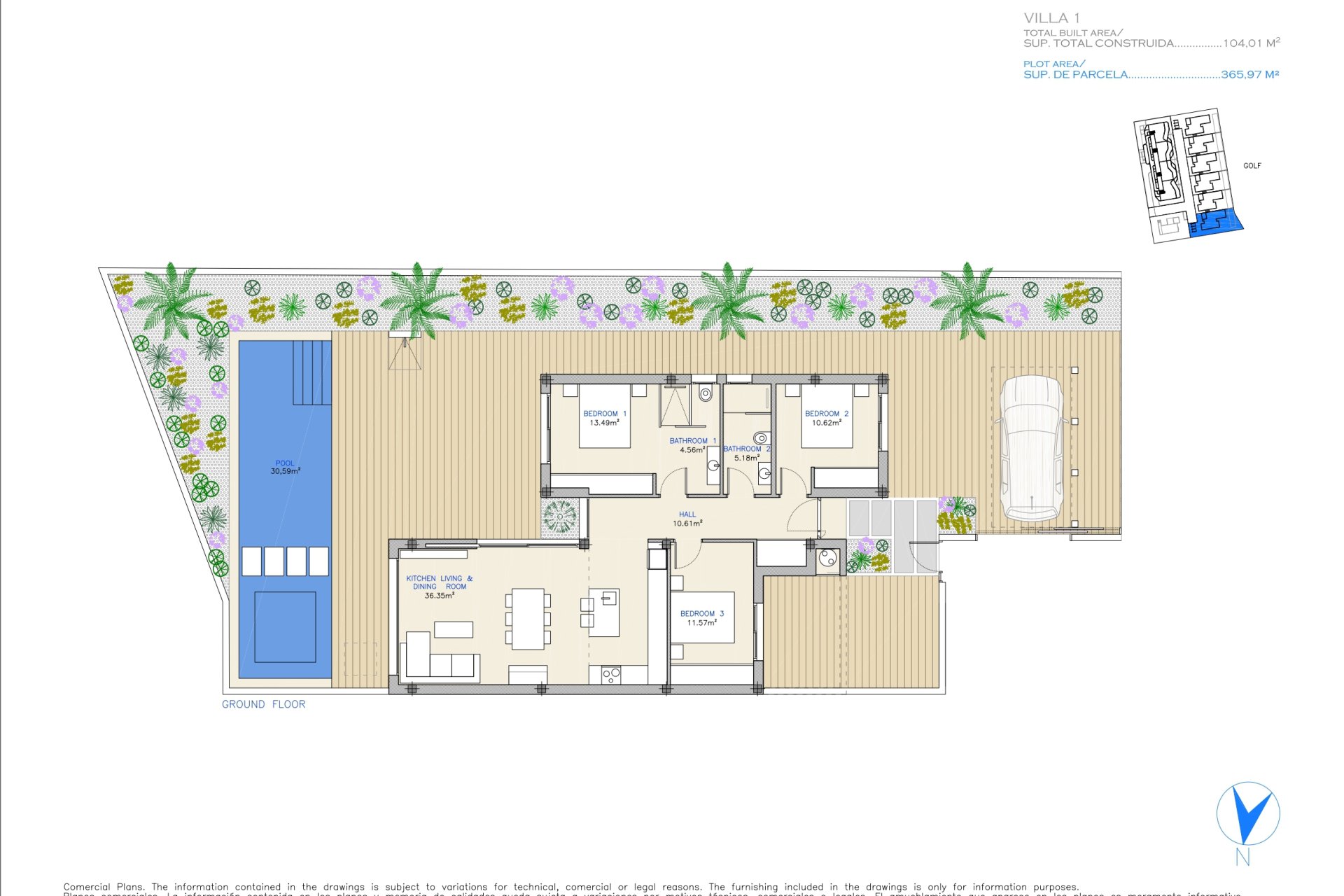 Het interieur van deze vrijstaande woningen is ontworpen met comfort en stijl in gedachten. Met een indeling die drie slaapkamers en twee badkamers omvat, is elke ruimte geoptimaliseerd voor ruimtelijkheid en functionaliteit. De porseleinen tegelvloeren geven een moderne uitstraling en zijn gemakkelijk te onderhouden. De woningen zijn uitgerust met airconditioning om het hele jaar door comfort te garanderen. Bovendien zijn ze voorzien van geïntegreerde apparaten, ingebouwde kasten die de opbergruimte maximaliseren, elektrische rolluiken voor extra gemak en een video-intercom die de veiligheid garandeert.