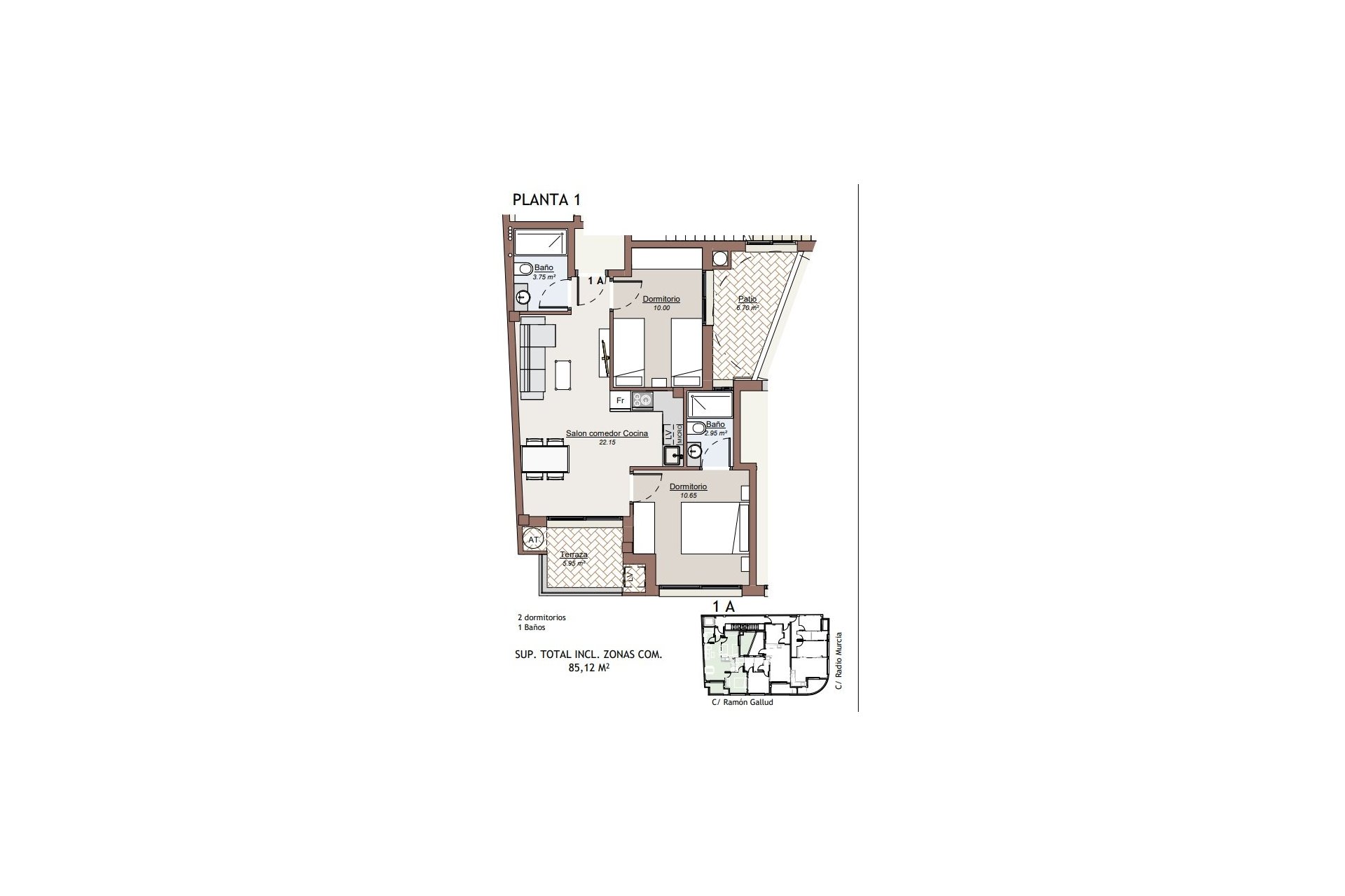 The interiors of the apartments and penthouses are equipped with modern features that ensure a comfortable living experience. Ceramic floors add an elegant touch and are easy to maintain. Security and comfort are assured with a video intercom and electric shutters. The kitchens are fully equipped with appliances, and built-in wardrobes offer efficient storage. Additionally, the pre-installation of air conditioning allows easy adaptation to each resident's climate preferences. With two bedrooms and two bathrooms, these properties are designed to meet the needs of modern and functional living.